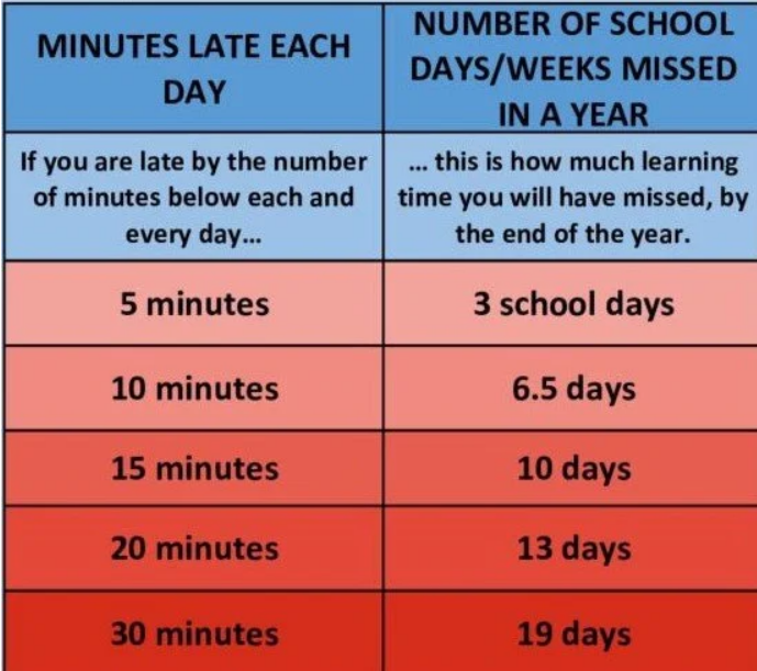 The habit of being a regular, punctual attender at school will stand your child in good stead for the future, particularly in the world of work.